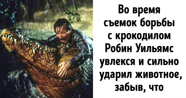 Робін Вільямс розповідав, що під час зйомок сцени, де Алан бореться з крокодилом, актор трохи захопився і сильно вдарив крокодила ліктем, забувши, що в костюмі був чоловік. Актор отямився, тільки коли почув вигук «Гей!», йде зсередини тварини.