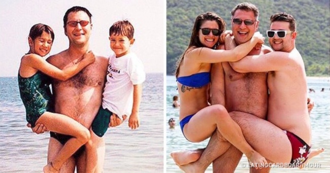 Останнім часом все більше людей відтворюють свої старі сімейні знімки, фотографуючись в тих же місцях, а деколи навіть у тій же одязі. Деякі йдуть ще далі і витрачають роки на підготовку серії пам’ятних знімків.