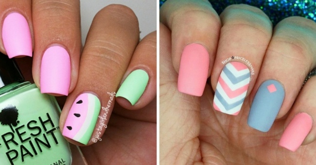Матовий манікюр з різнобарвним дизайном