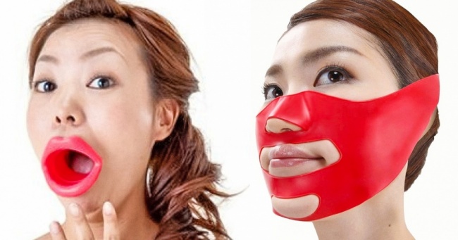 А це незвичайне пристосування з силікону сприяє схудненню особи і запобігає утворенню зморшок.