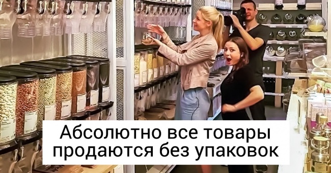 Але зараз в Америці і Європі набирають популярності магазини, в яких продаються на вагу звичні нам продукти: макарони, крупи, цукерки, печиво. І все це без упаковок. Один з таких магазинів — Original Unverpackt. Його відкрили в Берліні дві подруги: Мілена Глимбовски і Сара Вольф.