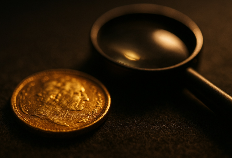 Первый шаг — определить, что перед вами: инвестиционная или коллекционная монета. Инвестиционные монеты современного выпуска обычно имеют стандартный вес (1 oz, 1/2 oz, 1/4 oz) и указание пробы. Коллекционные монеты, как правило, старше, имеют исторические изображения и надписи.